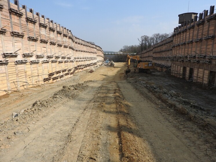 V době zpracování tohoto příspěvku uplynul právě jeden rok od slavnostního zahájení stavby, které proběhlo dne 11. 3. 2025 poklepáním základního kamene. Za uplynulé období byly vybudovány tři stavební jámy – portál Dolní Radechová, střední úsek a portál Babí (obr. 8).
