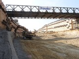 Obr. 11 Pohled západním směrem na stavební jámu s mostním provizoriem k zámku Stránov